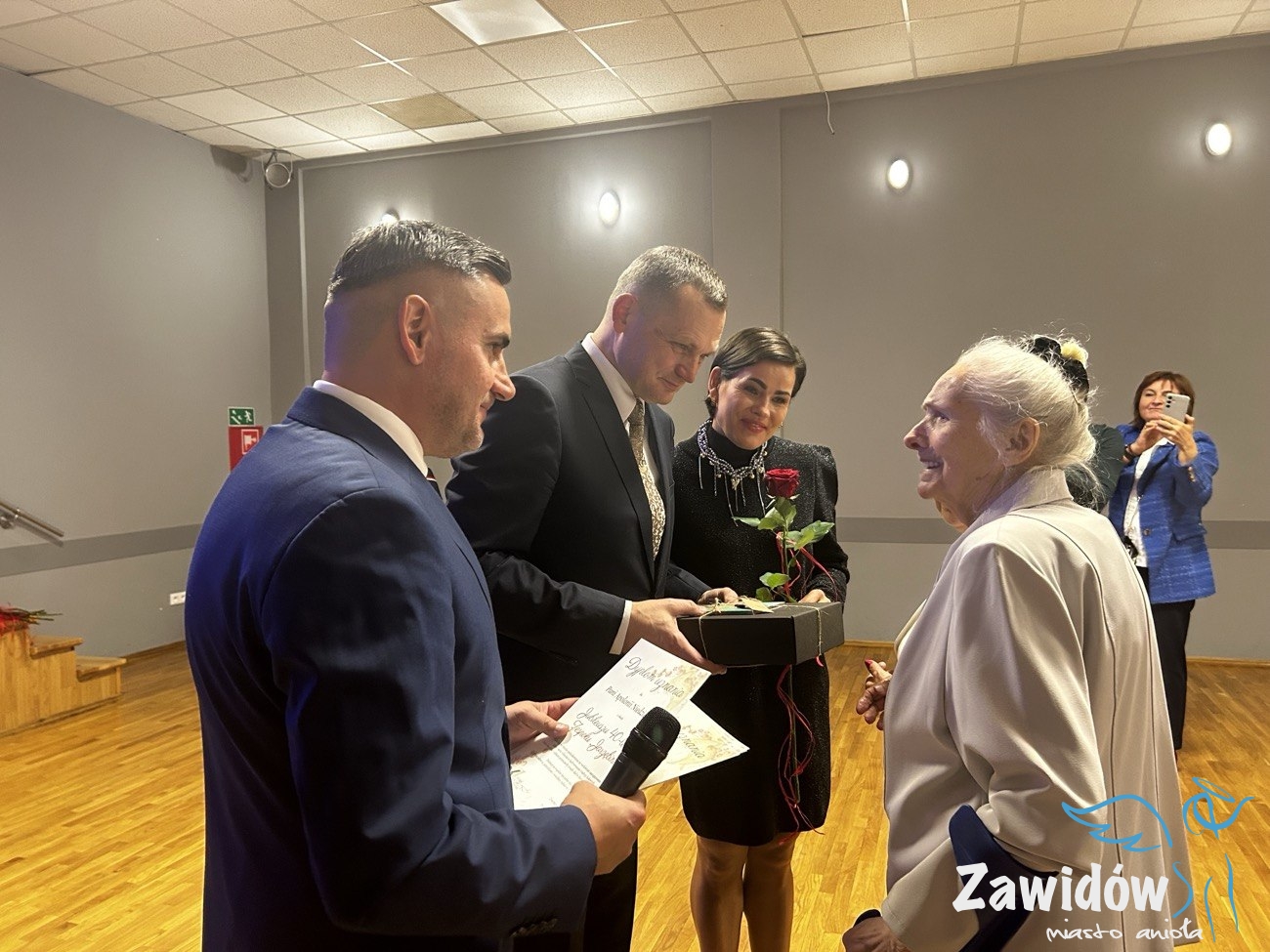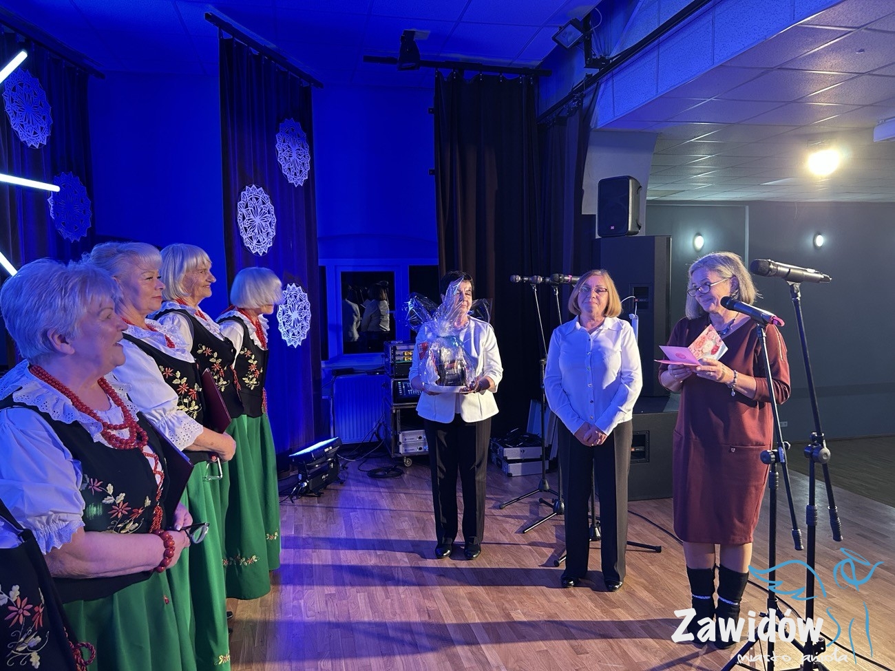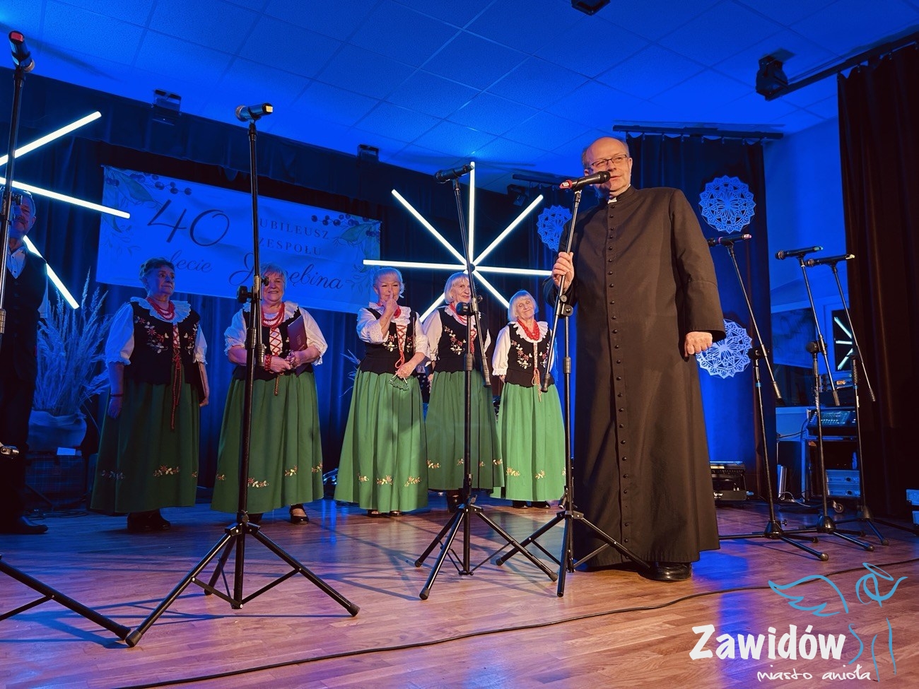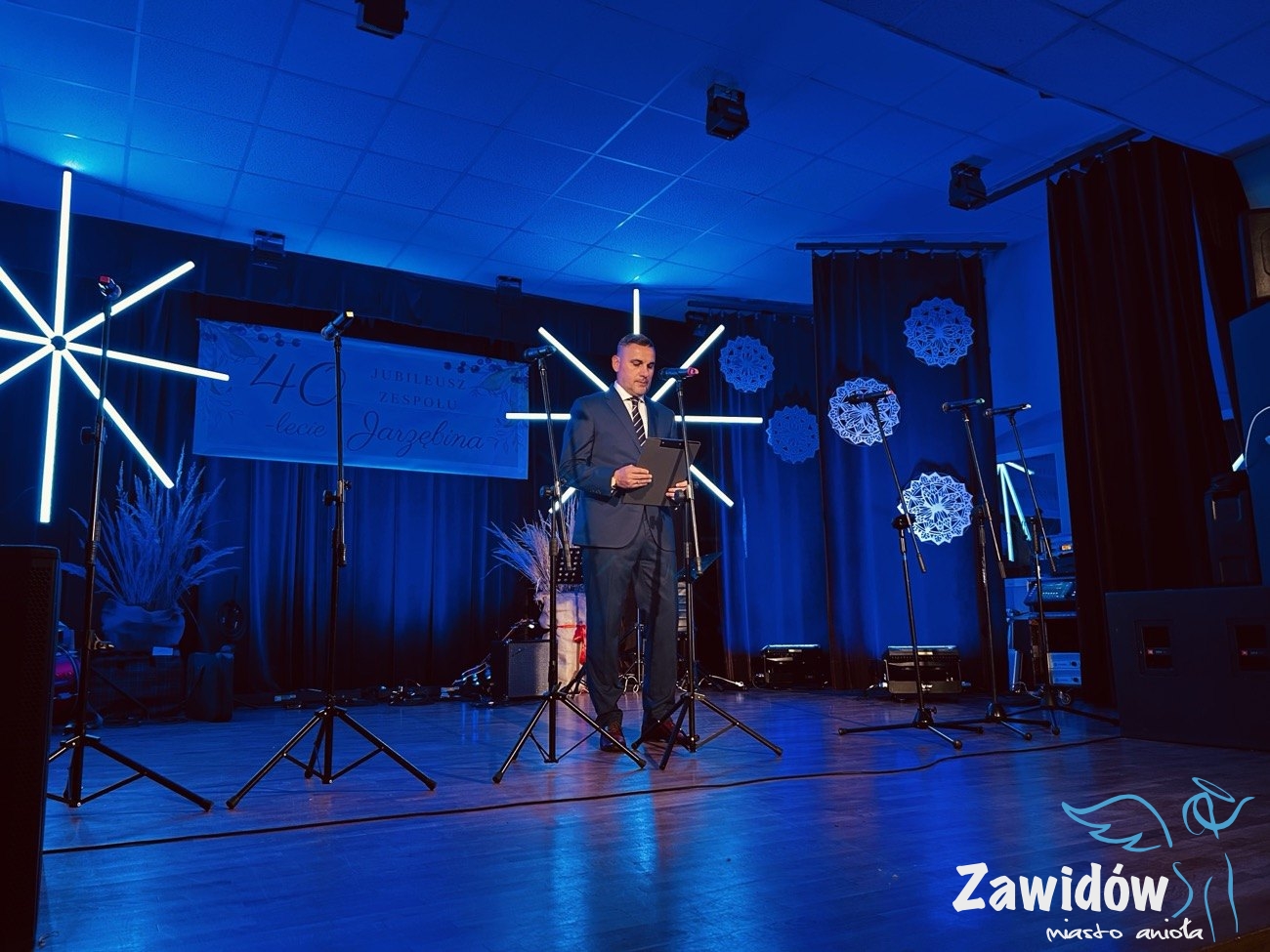 Słowa uznania i wdzięczności za wieloletnią działalność artystyczną skierował do zespołu również Dyrektor Ośrodka Kultury, Konrad Tkaczyk. Podkreślił, że „Jarzębina” od czterech dekad wzbogaca życie kulturalne Zawidowa i skutecznie promuje lokalne tradycje. W dowód uznania wręczył Jubilatom pamiątkową statuetkę oraz wyjątkowy prezent, symbolicznie podkreślając ich dorobek i zaangażowanie.