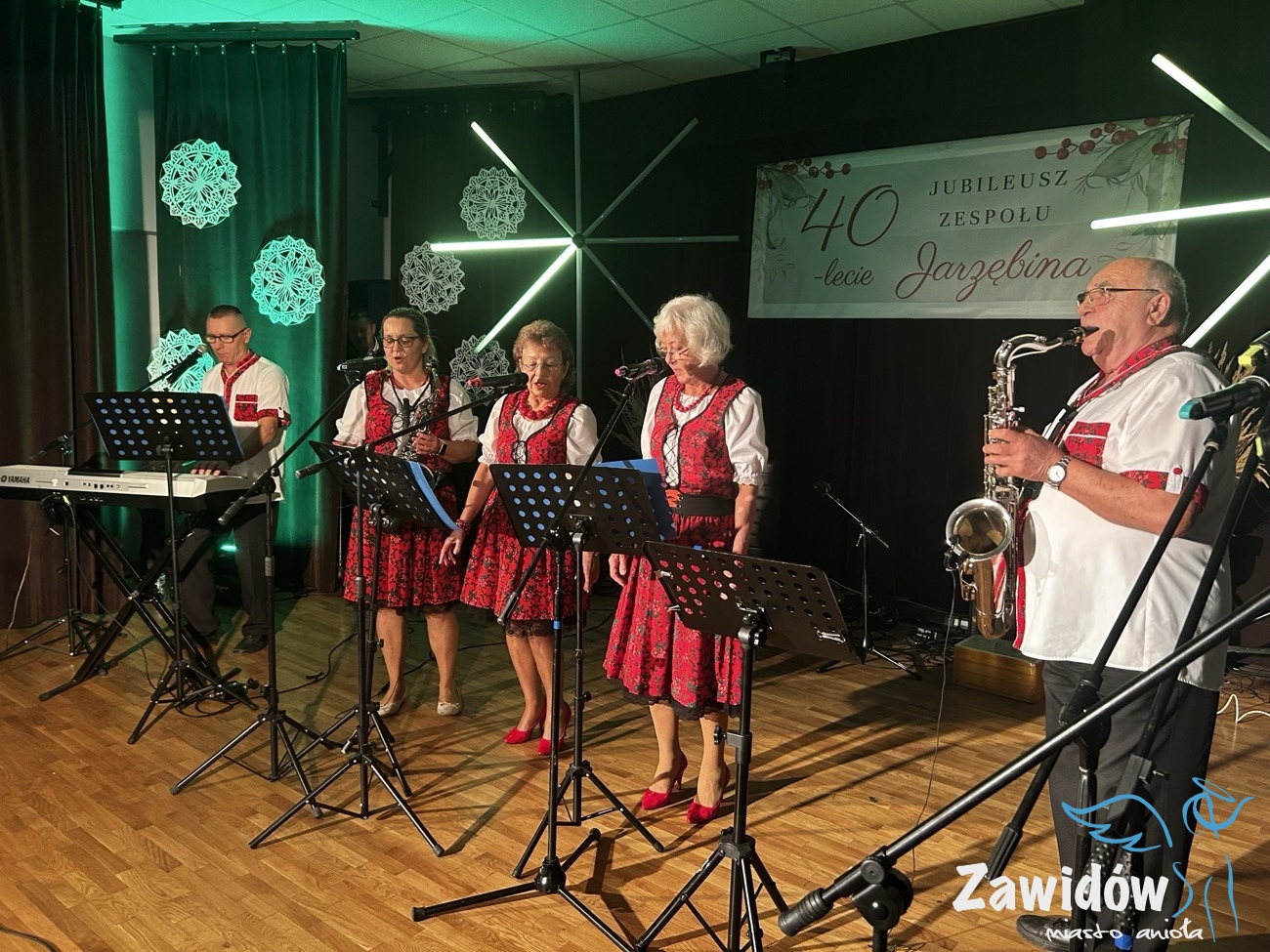 W sobotę, 11 października br., w sali widowiskowej Ośrodka Kultury w Zawidowie odbyła się jubileuszowa gala z okazji 40-lecia działalności artystycznej Zespołu Folklorystycznego „Jarzębina”. Sala przybrała tego dnia barwy zespołu i została gustownie udekorowana, tworząc wyjątkową oprawę uroczystości. Wydarzenie zgromadziło licznych gości, w tym przyjaciół zespołu, przedstawicieli władz samorządowych oraz mieszkańców miasta. W programie znalazły się podziękowania, gratulacje, występy jubilatów i zaprzyjaźnionych zespołów, a także symboliczny toast i wspólne dzielenie urodzinowego tortu.