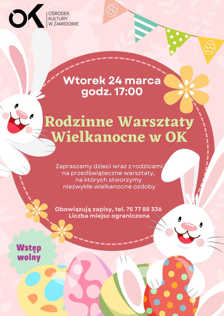 Święta Wielkanocne zbliżają się wielkimi krokami! Z tej okazji zapraszamy dzieci (bez ograniczeń wiekowych) wraz z rodzicami do udziału w trzeciej edycji Rodzinnych Warsztatów Wielkanocnych, organizowanych przez Ośrodek Kultury w Zawidowie.